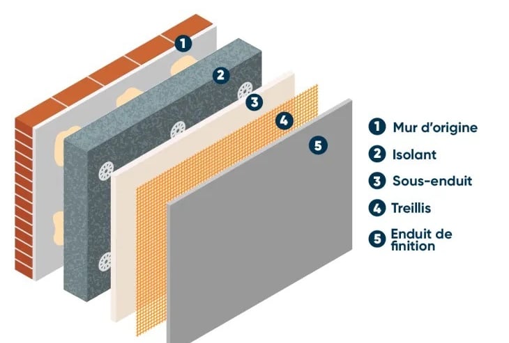 L’isolation thermique par l’extérieur est la solution la plus performante pour améliorer l’efficacité énergétique de votre habitation. Elle consiste à poser un isolant (comme le polystyrène expansé ou graphité) directement sur les murs extérieurs, puis à l’enrober d’un sous-enduit armé d’un treillis et d’un enduit de finition.